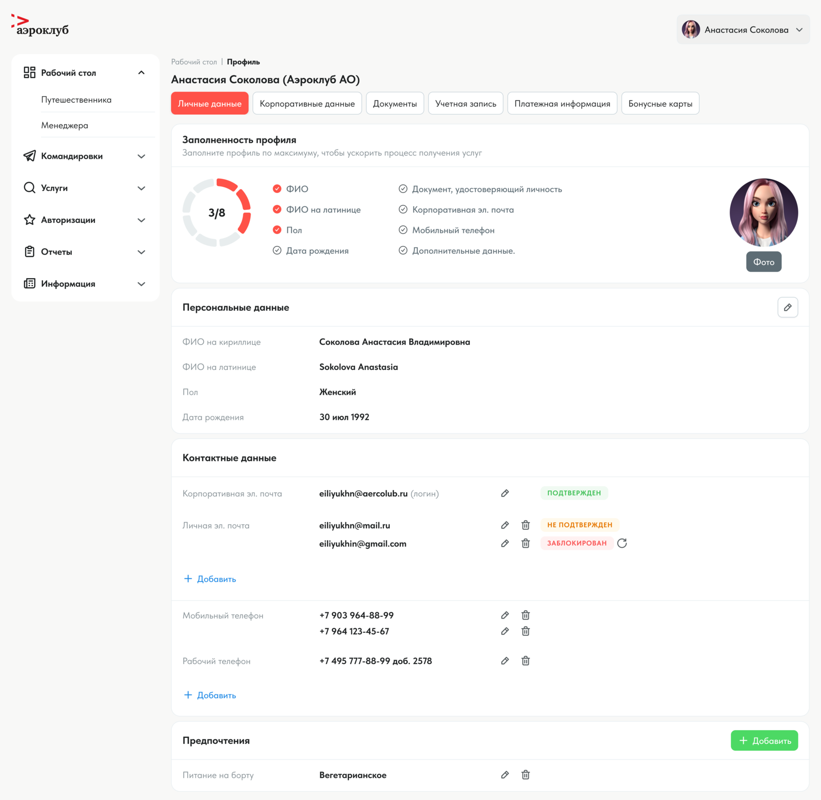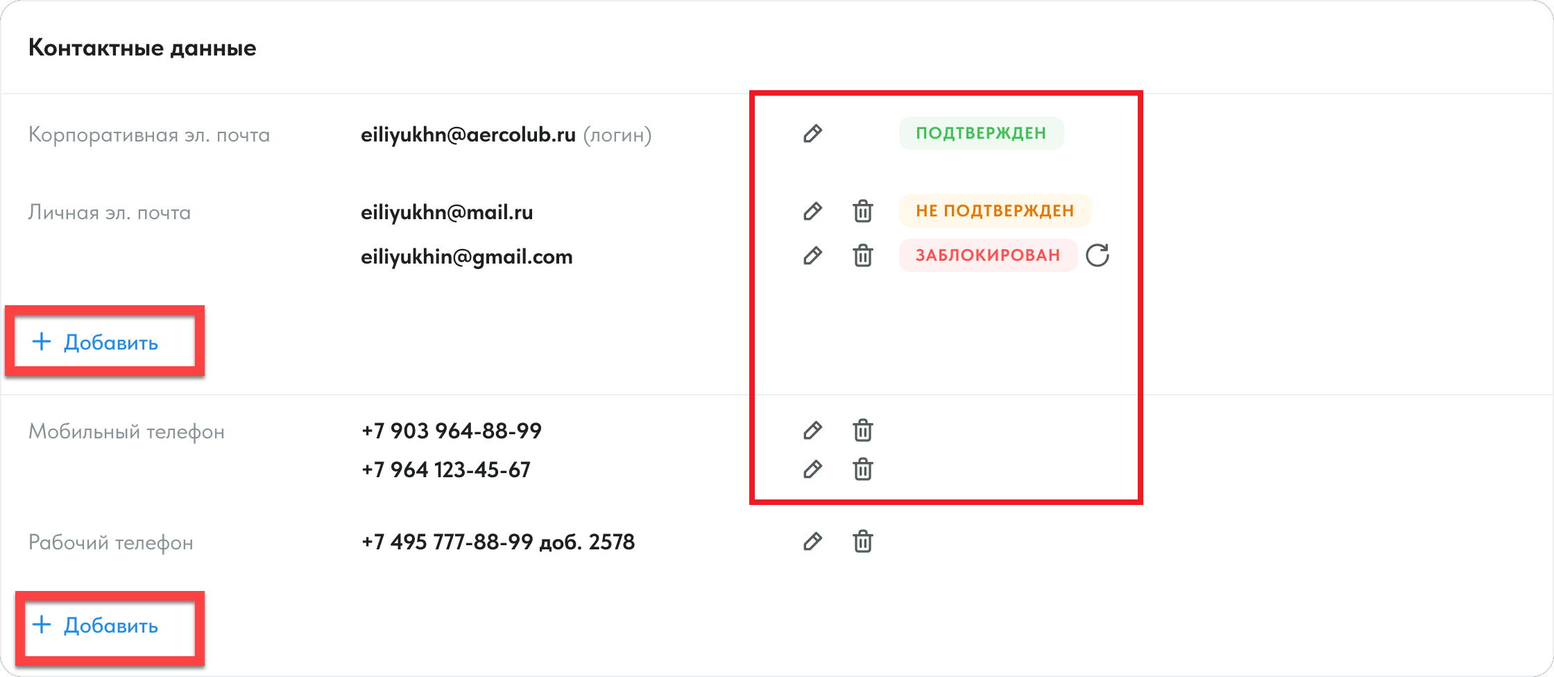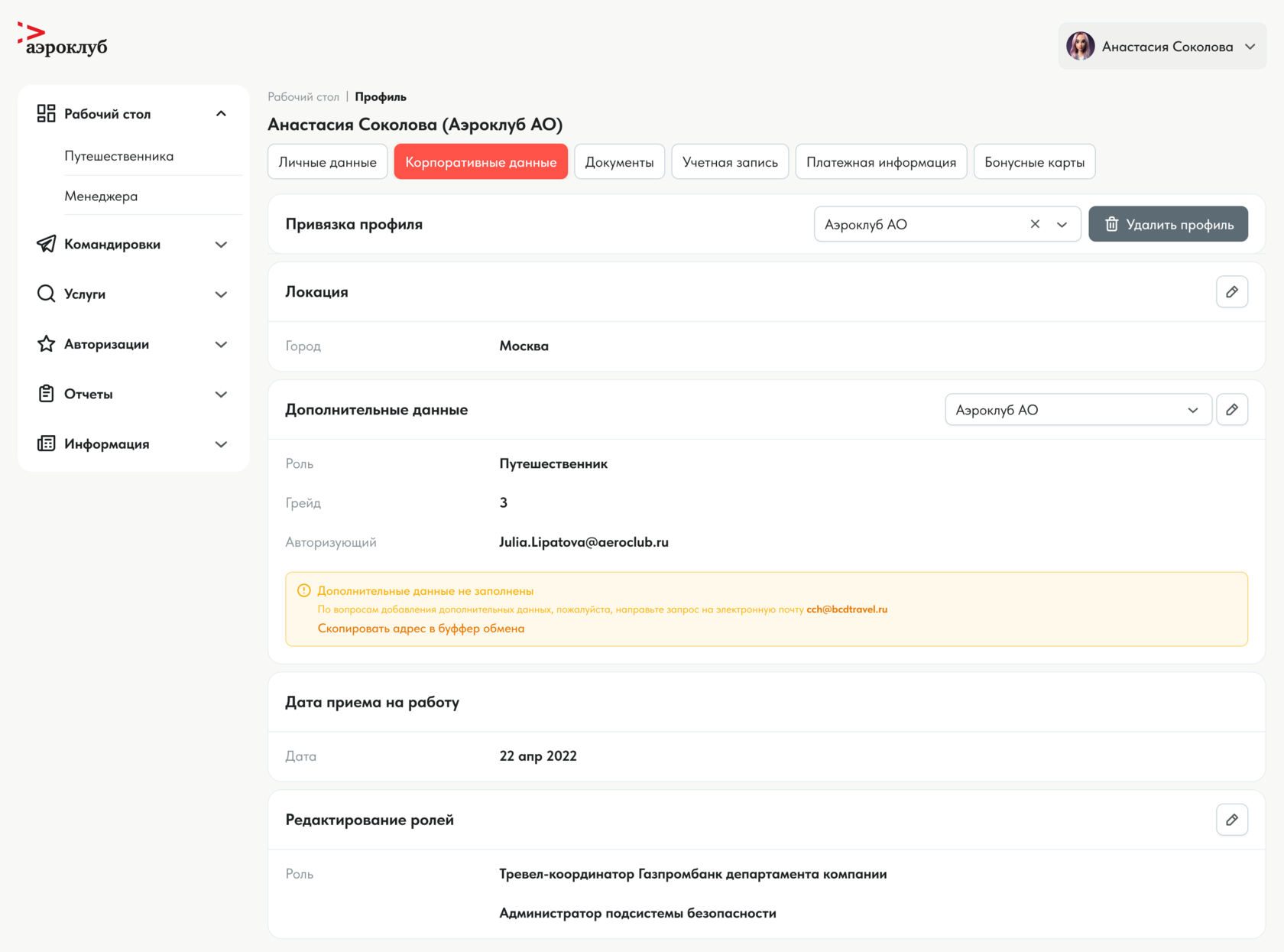 В разделе Банковские карты можно просматривать, добавлять, удалять информацию о банковских картах. Просмотр и изменение загруженных карт, а также добавление новых карт в данном разделе доступно только самому обладателю профиля. Исключение составляют компании, которым подключена соответствующая функция
