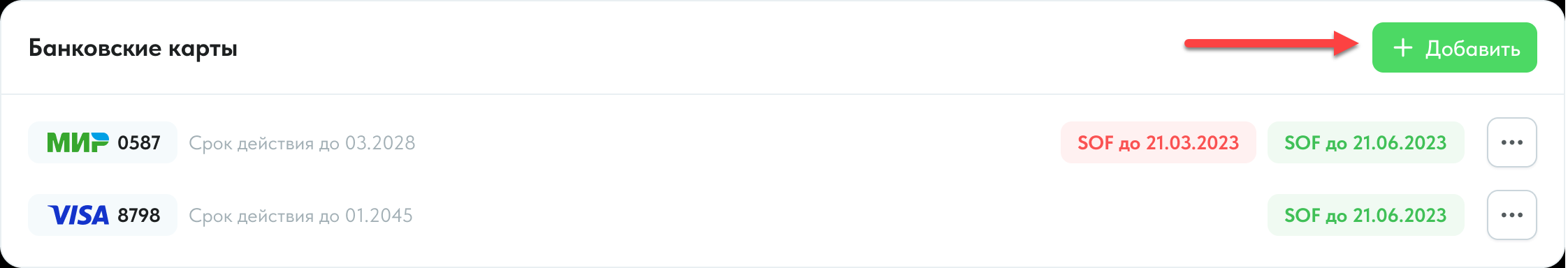 Чтобы загрузить новую карту, нажмите кнопку Добавить и укажите данные банковской карты